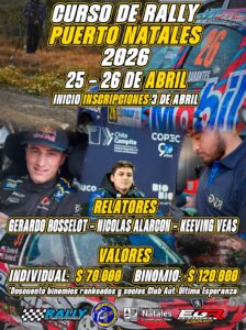Con el objetivo de seguir impulsando el automovilismo en la región y formar nuevos talentos, se anunció la apertura oficial del proceso de inscripción para el Curso de Rally 2026, que se desarrollará los días 25 y 26 de abril en la capital de la provincia de Última Esperanza.